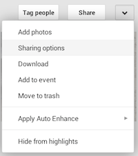 The next step is to generate a link for the album. Click the small arrow near the top-right corner of the pane. Select "Sharing Options".