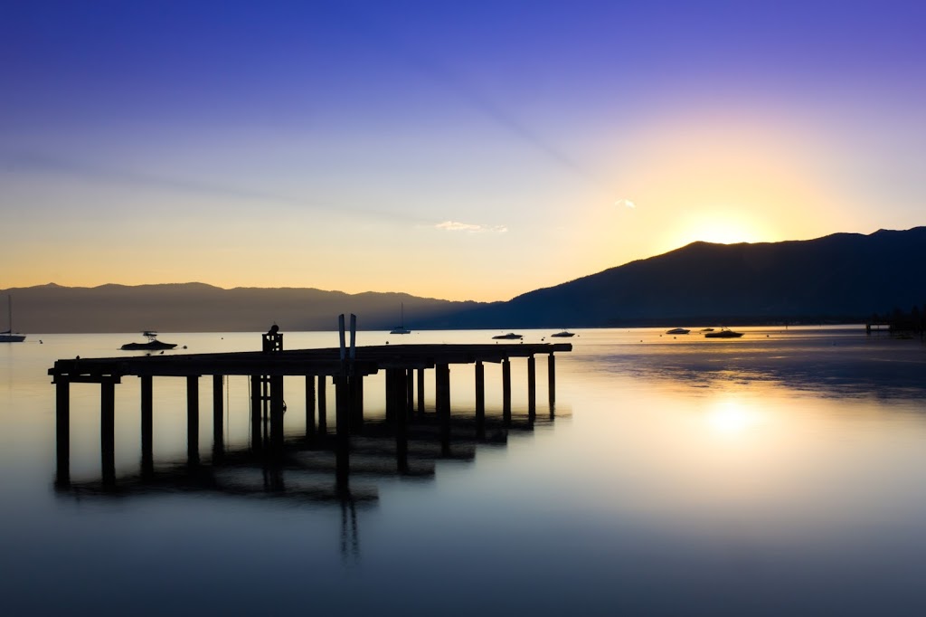 After. I took this image during sunrise at Lake Tahoe. I used a very small aperture and ISO 100 to get maximum depth of field. The aperture is extra small to make the exposure length very long to smooth out the water. To post process, I increased the contrast and brought out the color in the sky. I also accentuated the sunrays using Photoshop.