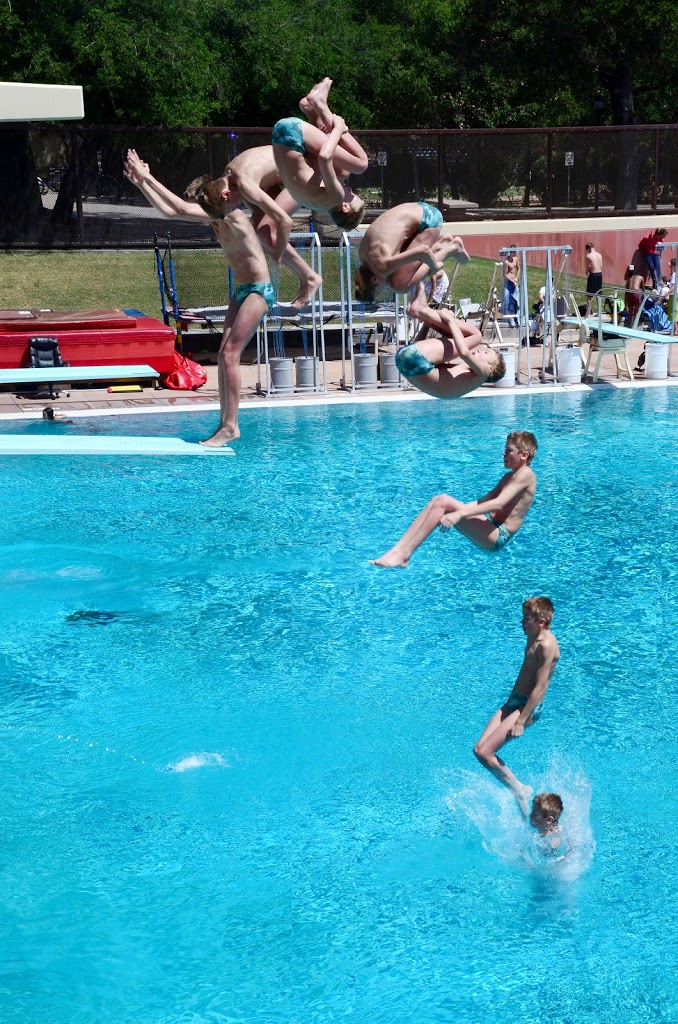 I took this photo at a diving class at Avery Aquatic center at around 1 pm. The diver performed a very elegant somersault. I took a series of photos and stitched them together in photoshop. I stacked the photos, applied layer masks, and manually exposed each photo in the stack using paintbrush tool. The burst photo nicely shows the progression of his high diving. | ||