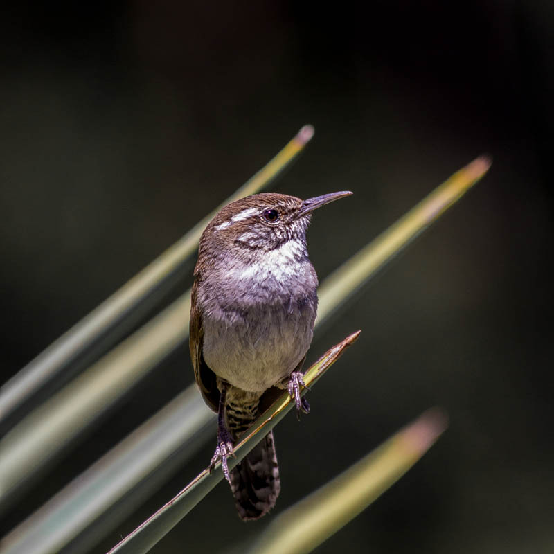 This is a small bird at the Cactus Garden. The image was square cropped and sharpened. Highlights and blacks were decreased in Lightroom. Clarity and vibrance were increased. Greens were desaturated to bring the focus back to the bird. | ||