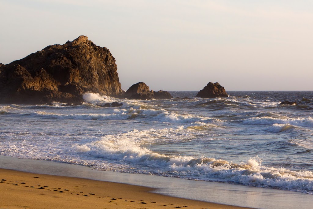 This was again at McClures Beach, Point Reyes. It was before sunset and the sun was to the right of this hill. Some golden color was visible on the hill and waves. I also like that there's an s-curve in the wave leading to the hill. Low ISO and not to low f-number were used to reduce noise and make sure everything is in focus. | ||