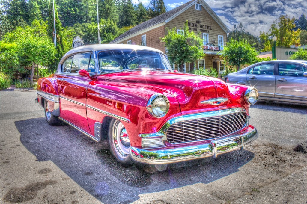 I found this really cool looking car and noticed it was super shiny. I took 3 bracketed exposures to capture a larger dynamic range. Then, I merged them and tone mapped them in Photomatix I used a small aperture for this shot so everything is in focus. I set the camera on a nearby picnic table so that the camera was in the same place for all 3 shots.