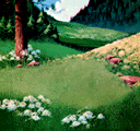 The third image is an optically scanned hand-painted cartoon background. To my eye, it looks fine at 5 bits, but begins to show artifacts at 4 bits. This reduction in the number of bits is at least partially due to the more random nature of the hand painting.