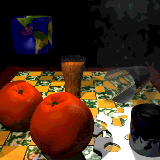 Note: This demo must be viewed on a gamma-corrected display, i.e. system B in the class notes. On the teaching lab PCs, you can enable gamma correction by typing "xgamma 1.7". If you don't do this, the quantization effects will be hard to compare, and the subtle differences between applying quantization in different spaces will be almost invisible. For more information about gamma correction and viewing web pages, look at our research lab's tutorial about gamma correction.