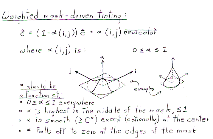 Option 1 might be called "interpolation in RGB space." It is the default interpolation method using in most commercial paint programs that offer an "airbrush" tool. In the formulas, CR, CG, and CB refer to the old, then the new, pixel color in the canvas, and newcolorR, newcolorG, and newcolorB refer to the brush color.