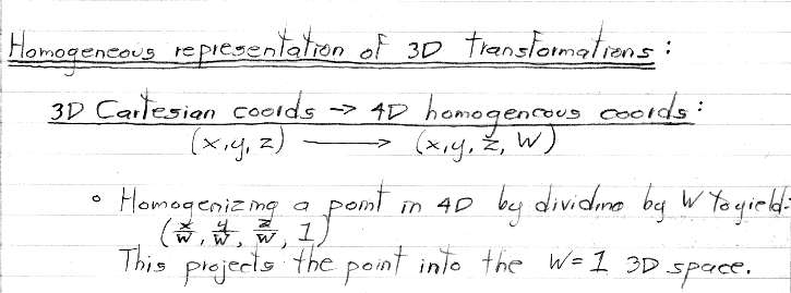 Thus, the 3D Cartesian coordinates occupy the W = 1 three-dimensional subspace within 4D homogeneous space.