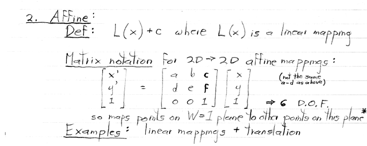 In other words, linear mappings in 2D are those that can be accomplished using a 2 x 2 matrix multiplication with the coordinates (not raised to any power) as inputs.