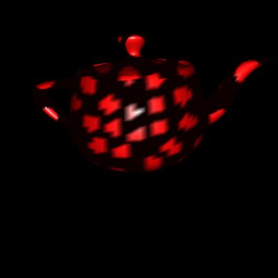 Spotlight Dicing factor of 50. Bump mapped surface. Dim ambient light. |