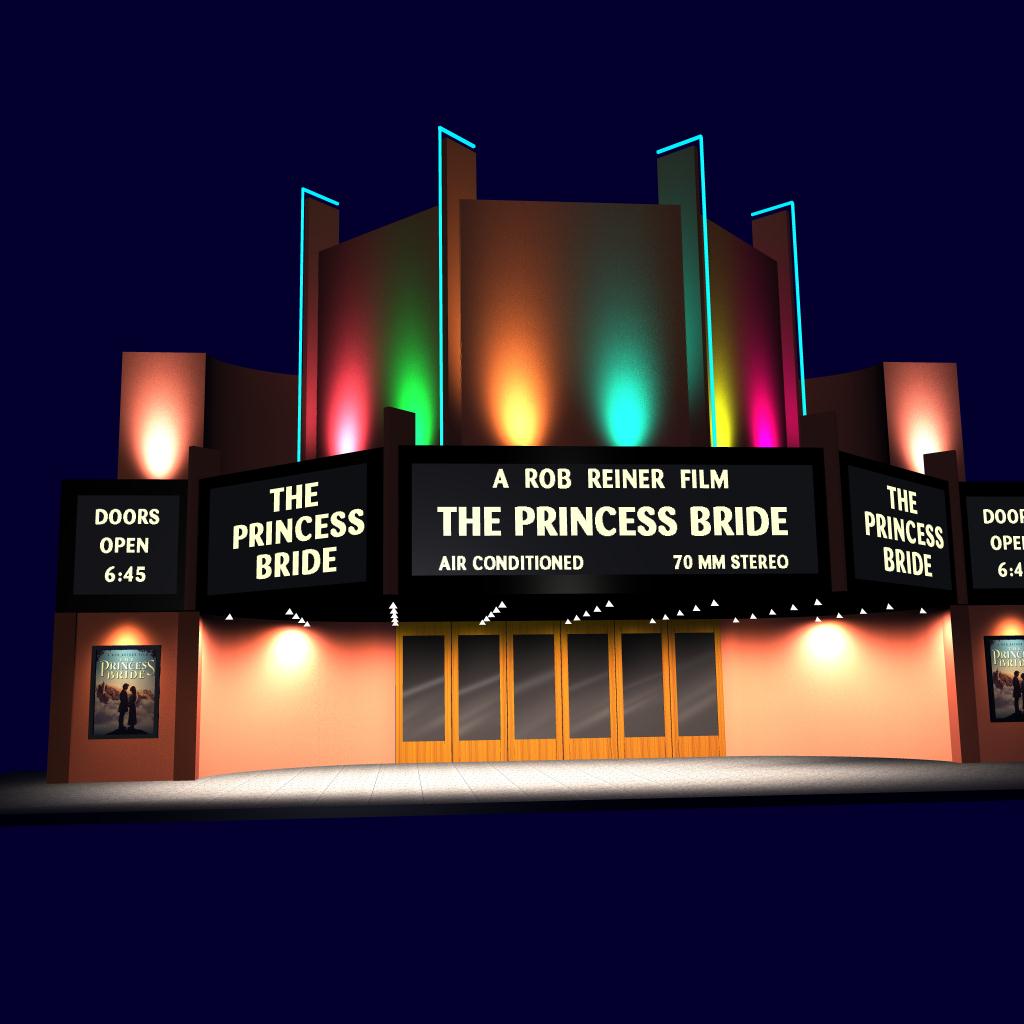 Greg's winning competition entry was a still frame entitled The Theater, rendered in one hour and a half using 6 by 6 antialiasing. The model was loosely based on a design by Charles Lee of an actual theater (the La Reina) built in 1938 in Sherman Oaks.