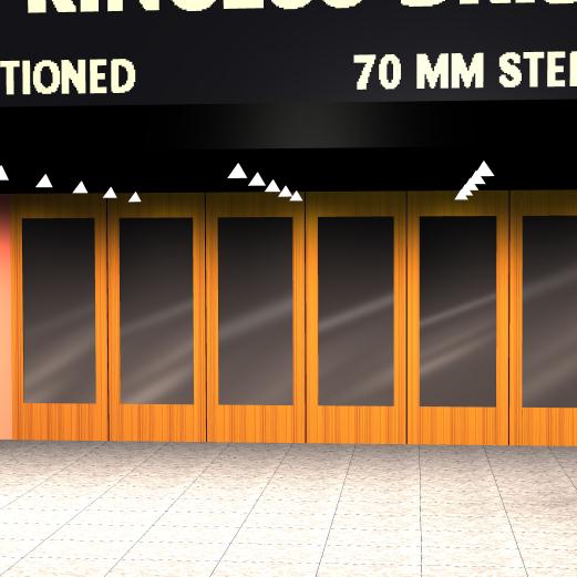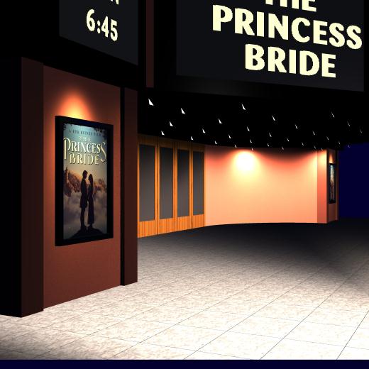 The Theater illustrates primarily an impressive modeling effort. The model comprises 96 separate objects modeled in i3dm, and arranged in a scene using Composer. Moreover, The Theater illustrates the effective use of Warn lights (43 of them), such as the spot lights which give a warm glow to the posters.
