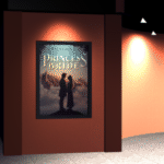 Note here that the poster is softly lit by a single spot light. Also, note the striking realism of textured versus non-textured surfaces: the wall around the poster (as well as the curved wall) are stucco textured while the wall posts are not.