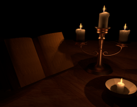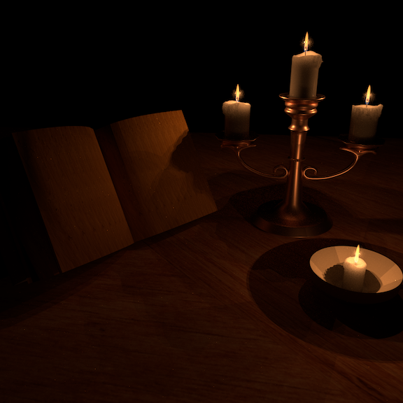 Viet and Sang Goo used a physically-based model of a candle flame along with a volumetric approach to produce the subtle multi-layered flames illuminating this nighttime scene. [