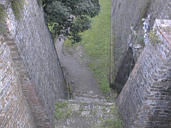 From another entrance, after passing through the gate, you must climb along a long, winding open-air corridor, with plenty of room for defenders above.