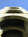 Looking up inside the tower, you can see three soccer balls
