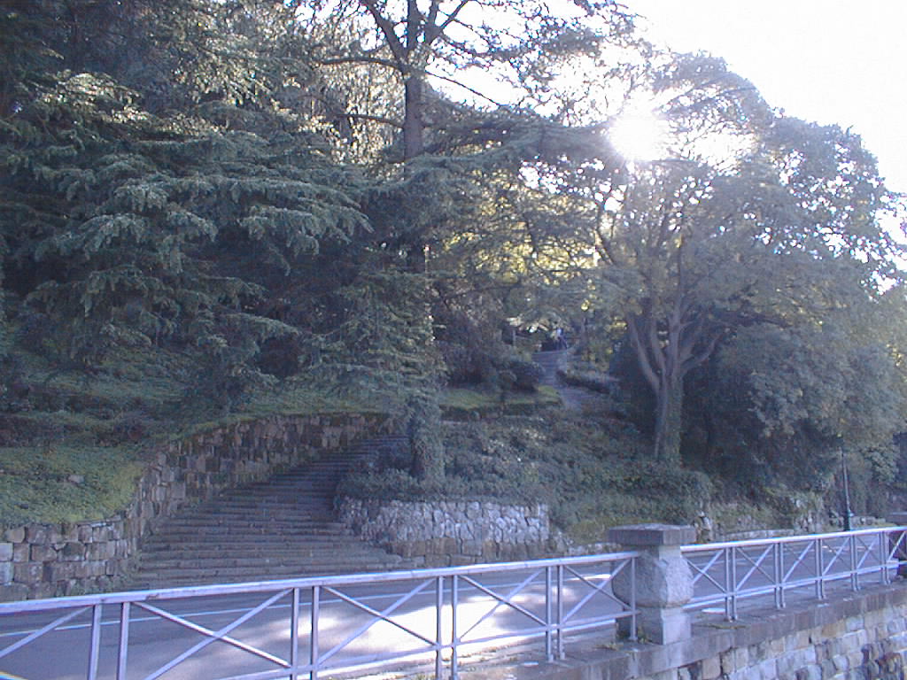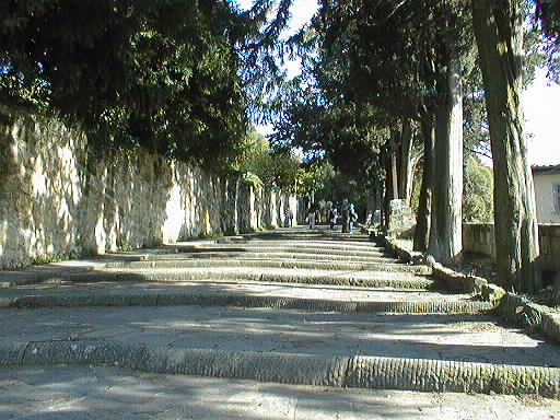 Steps climb up the west side of the hill to the piazza.