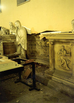 ++ ...dropping heavy debris on some plaster replicas in storage... |