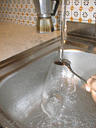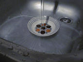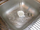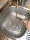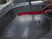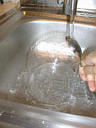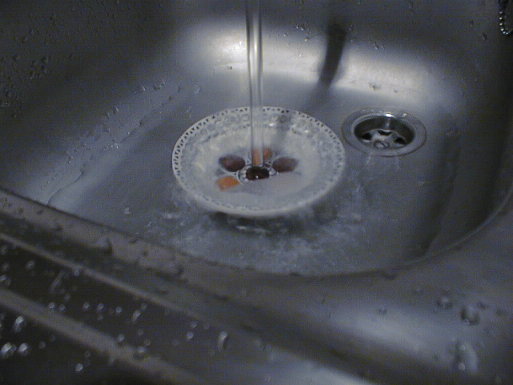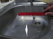 It's fun to put stuff in the stream, like this spoon, which creates a curtain of water below it.